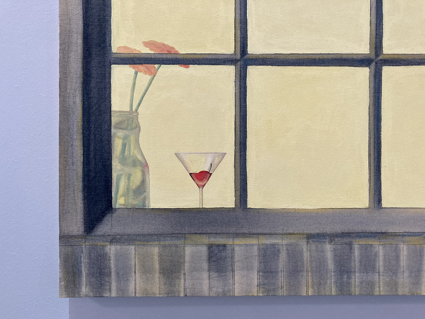 Window with flowers and a Manhattan cocktail — 80x1200cm — Oil, Casein and Pencils on canvas — 2021